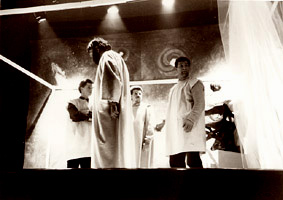 E' questa la commedia in cui Aristofane tratta più direttamente l'argomento culturale, scritta in quel periodo di importanti mutamenti dove alla antica cultura se ne contrapose una nuova tendente ad una innovazione radicale nei costumi e nel pensiero degli ateniesi. Il fenomeno più evidente in quel terremoto culturale che investì la Grecia fu la figura del Sofista che con un atteggiamento rigorosamente scettico si contrappose a quelle convinzioni oramai consolidate nella tradizione caratterizzanti la cultura . Aristofane ricava l'idea comica proprio dalla combinazione dei due massimi principi della teoria dei Sofisti e cioè l'inesistenza di una morale oggettiva superiore all'individuo e l'onnipotenza della parola nell'ottenere qualunque risultato. L'attuazione pratica di tali teorie è sintetizzata nella occupazione "didattica" del Sofista intento ad insegnare l'arte dei discorsi, cioè di quelle teorie che avrebbero trovato sicuramente una applicazione pratica nell'eventualità che il cittadino fosse stato chiamato in tribunale per una causa durante la quale, come si usava, avrebbe dovuto difendersi di persona... |
